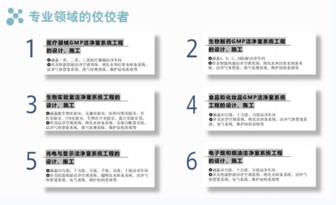 广东宝科建设工程有限公司是一家从事各行业综合性洁净室工程设计、施工及管理为一体的专业性企业。专业承 接各类医疗器械GMP洁净工程、生物制药GMP洁净工程、实验室洁净工程、食品车间洁净工程、化妆品车间洁净工程、 保健品洁净工程、 电子烟和烟油洁净工程、光电与显示洁净工程、精密电子洁净工程等高端领域的洁净室 ,具备多年 设计与施工经验的洁净系统工程总承建商。