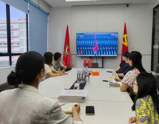 观看过程中,全体人员全神贯注,秩序井然。伴随着受阅部队铿锵有力的步伐、现代化武器装备的威武展示以及空中梯队的磅礴气势,会议室里多次响起由衷的赞叹和热烈的掌声。大家深刻感受到国家强大的国防实力、繁荣发展的辉煌成就以及中华民族不屈不挠、奋发向上的伟大精神。