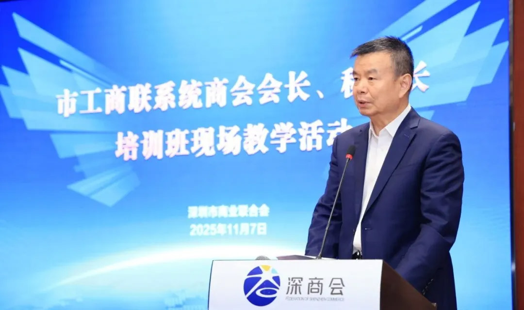 11月7日,深圳市工商联组织了工商联系统商会会长、秘书长培训班到首批标杆商会深圳市商业联合会(下称“深商会”)进行现场教学。本次培训旨在进一步提升商会会长、秘书长的履职能力,加强商会内部合规建设与服务效能,推动商会健康、规范、高质量发展。来自全市各商协会会长、秘书长及代表共50余人参加培训。