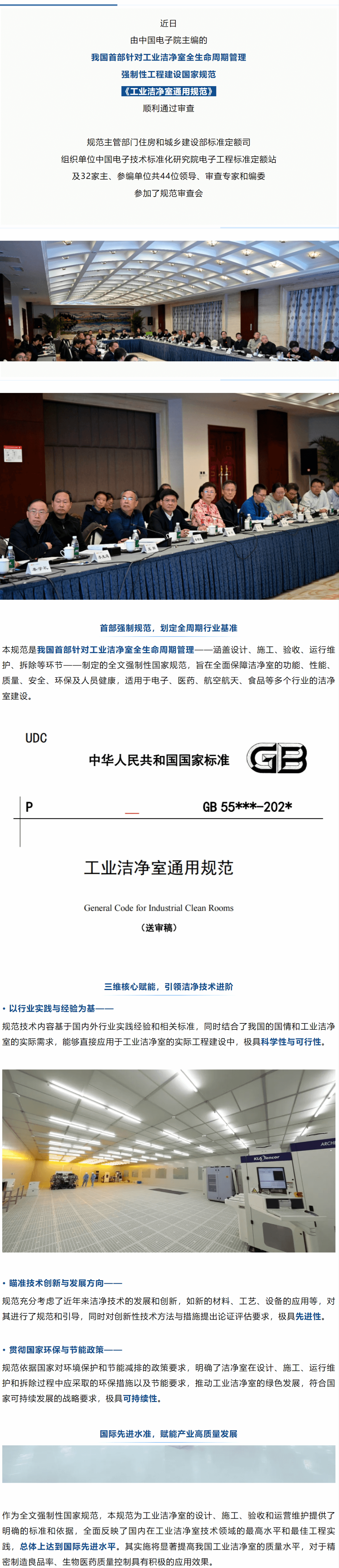 国标动态 | 硬准则!中国电子院主编的我国首部针对工业洁净室全生命周期管理强制性工程建设国家规范顺利通过审查!